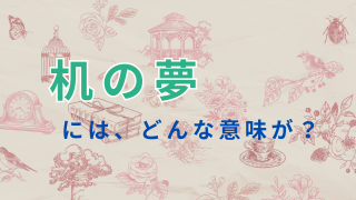 物とアイテム 机の夢の意味 机の夢占い 「机」の夢は、仕事や学び、計画性、整理整頓、自己管理などに関連しています。机は実際の作業や思考を行う場所であり、その状態や使われ方によって、現在の生活や心の状態が反映されます。整理整頓されている机の夢は順調な進展を示し、逆に乱雑な机の夢は混... 2025.02.10 物とアイテム